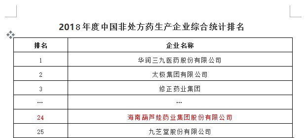 2018年11月15日,中国非处方药物协会发布《2018年度中国非处方药企业及产品榜》,尊龙凯时集团由2017年度中国非处方药生产企业综合排名第32名跃升至第24名。