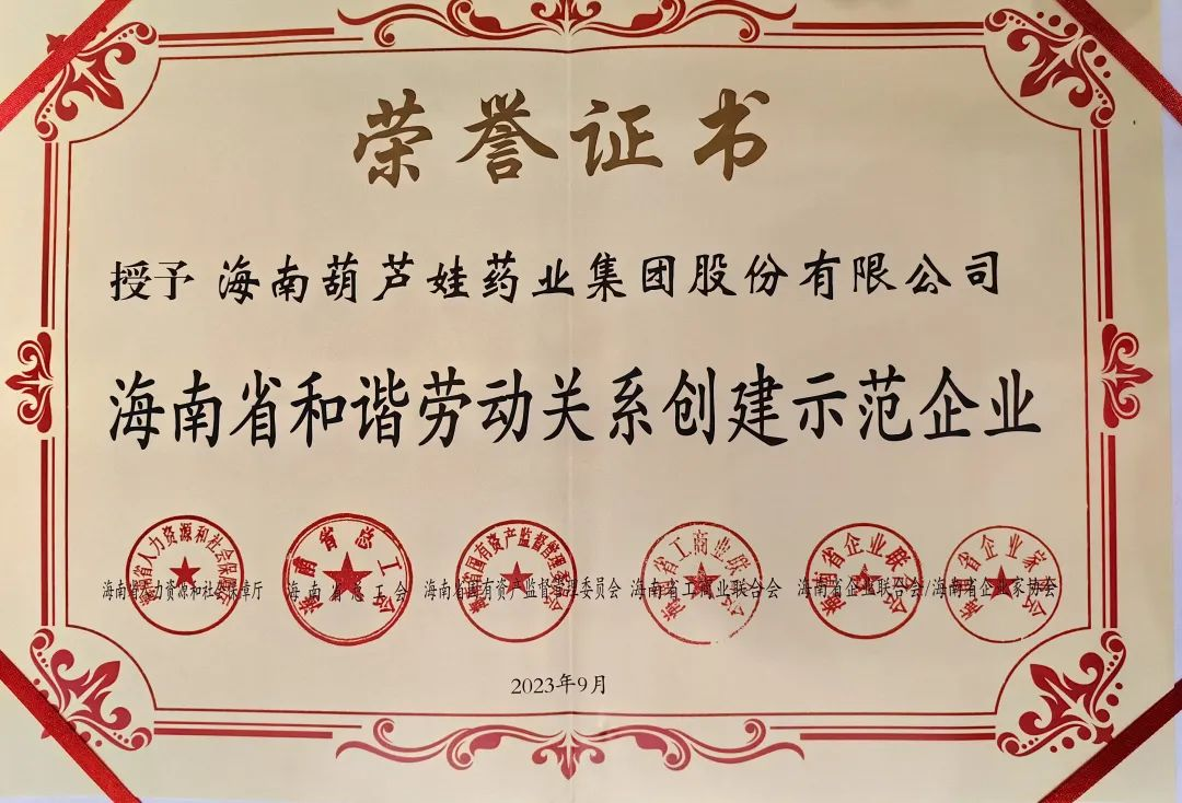 尊龙凯时集团获评“海南省和谐劳动关系创建示范企业”