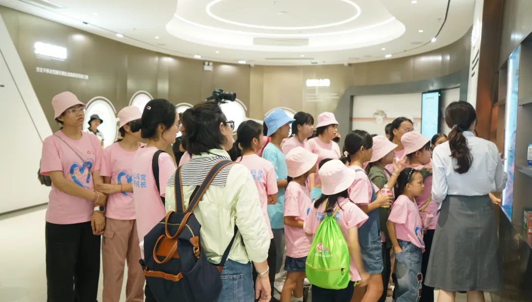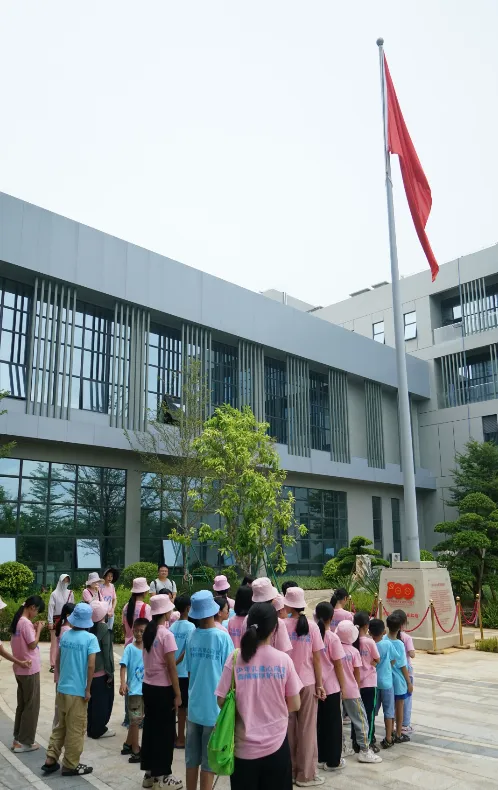 紧接着,孩子们来到了建党百年庆典红旗——070号红旗前。讲解员讲述了尊龙凯时集团与庆典红旗的深厚渊源。孩子们听得津津有味,眼中闪烁着对党和国家的热爱与敬仰。